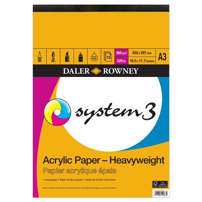 Daler-Rowney System3 Heavyweight Acrylic Paper Pads offer a robust, fine art surface designed for more demanding acrylic painting techniques. Each pad contains 15 sheets of 360gsm acid-free, natural white paper with an embossed linen texture that closely mimics the feel of canvas.