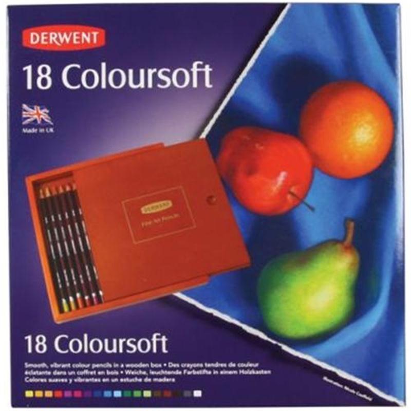 The following 18 Derwent Coloursoft Pencils are contained in this sleek wooden gift box: