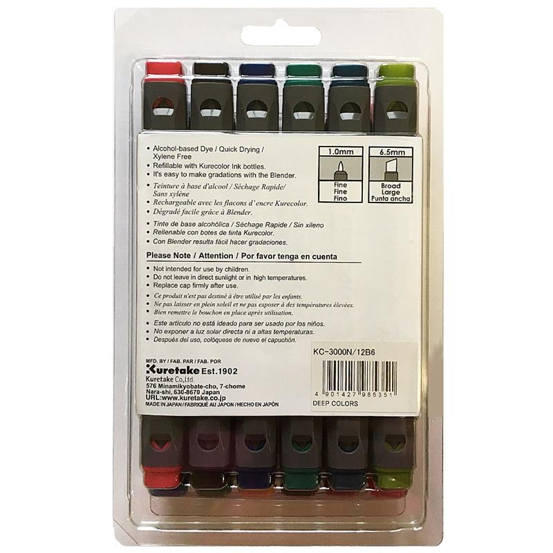 ZIG Kurecolor Twin WS Marker B6 Set with 12 deep colours: 316 Menthol Violet, 567 Deep Green, 793 Light Brown, 769 Deep Brown, 268 Deep Red, 264 Geranium Red, 266 Wine Red, 808 Natural Gray, 378 Deep Blue, 539 Marine Green, 339 Peacock Blue, 544 Olive Green.